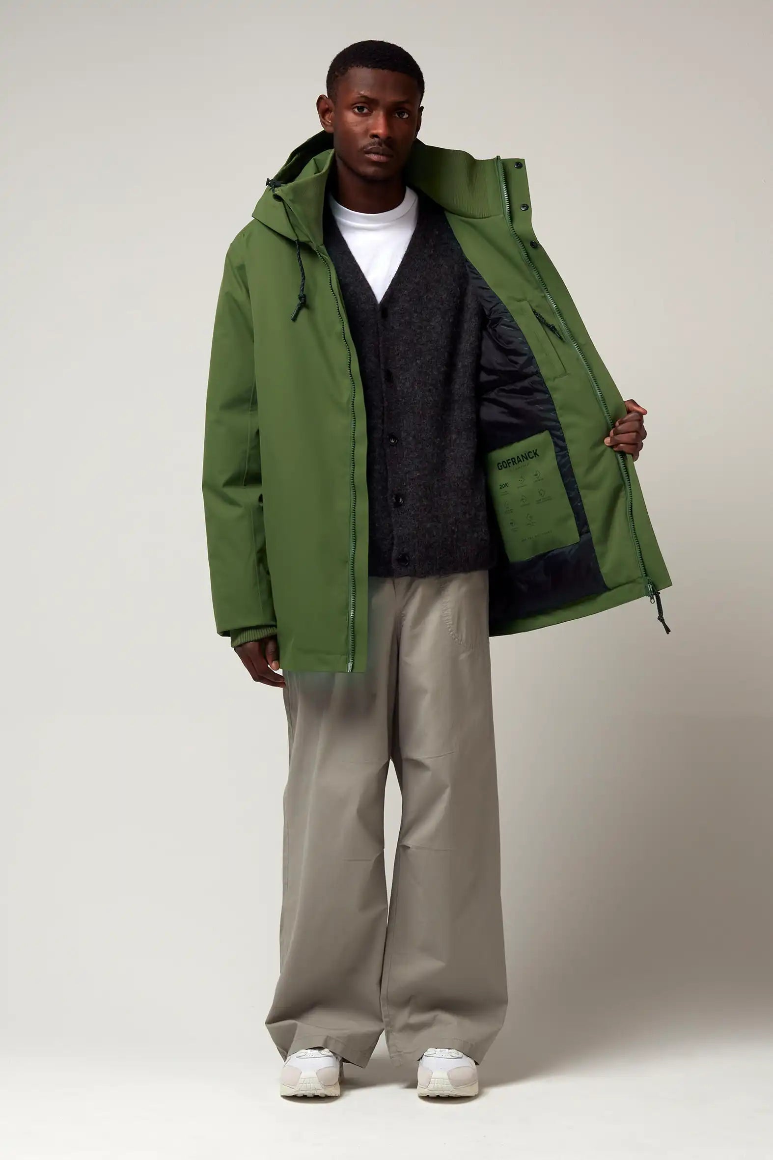 - Rem til at bære frakken på ryggen