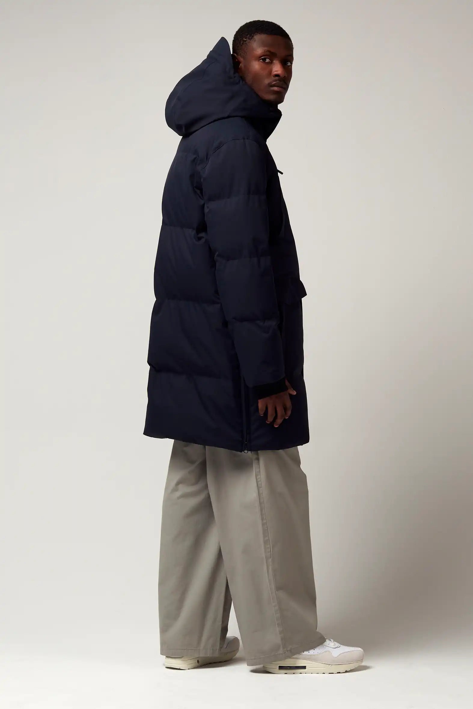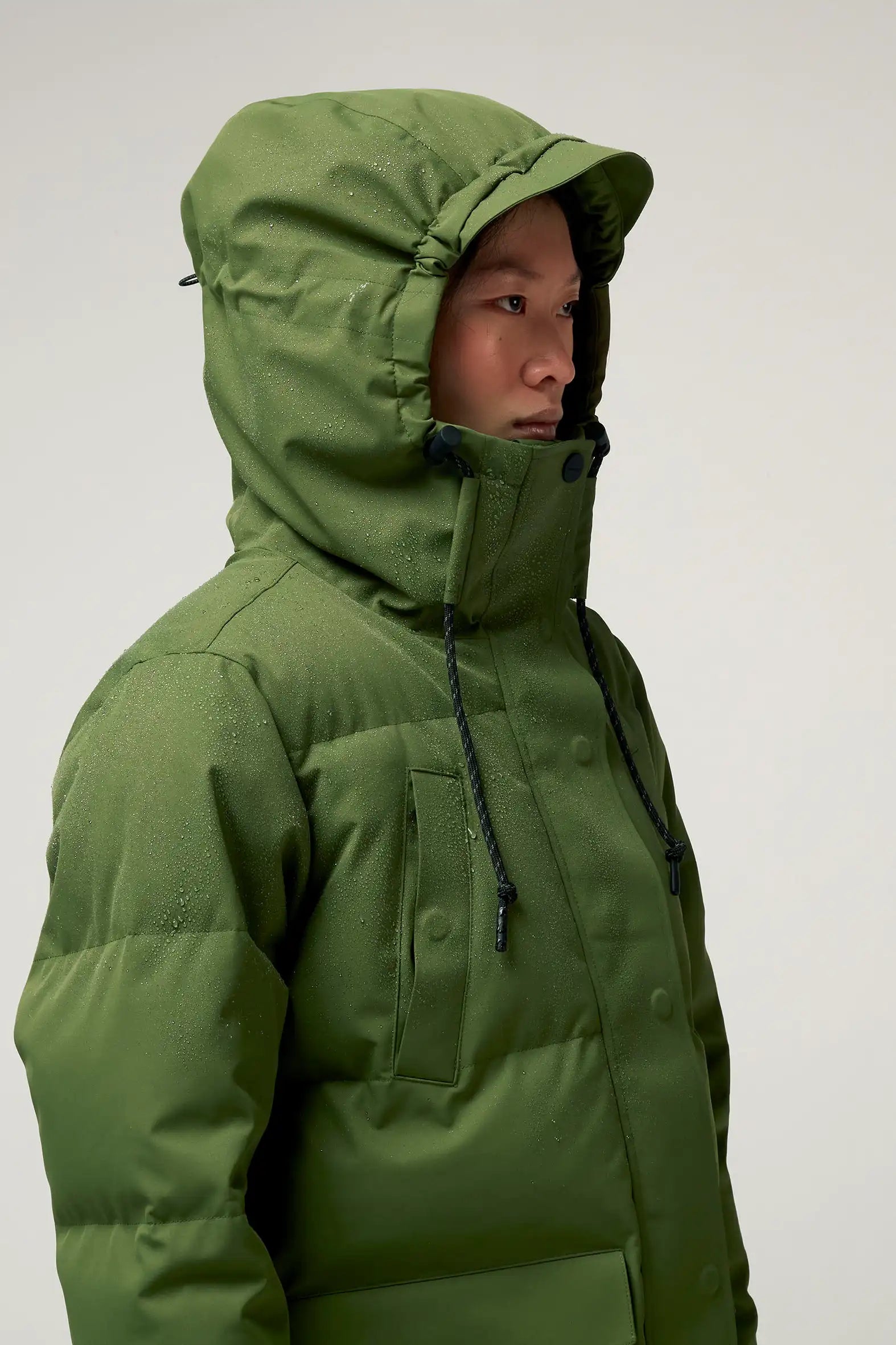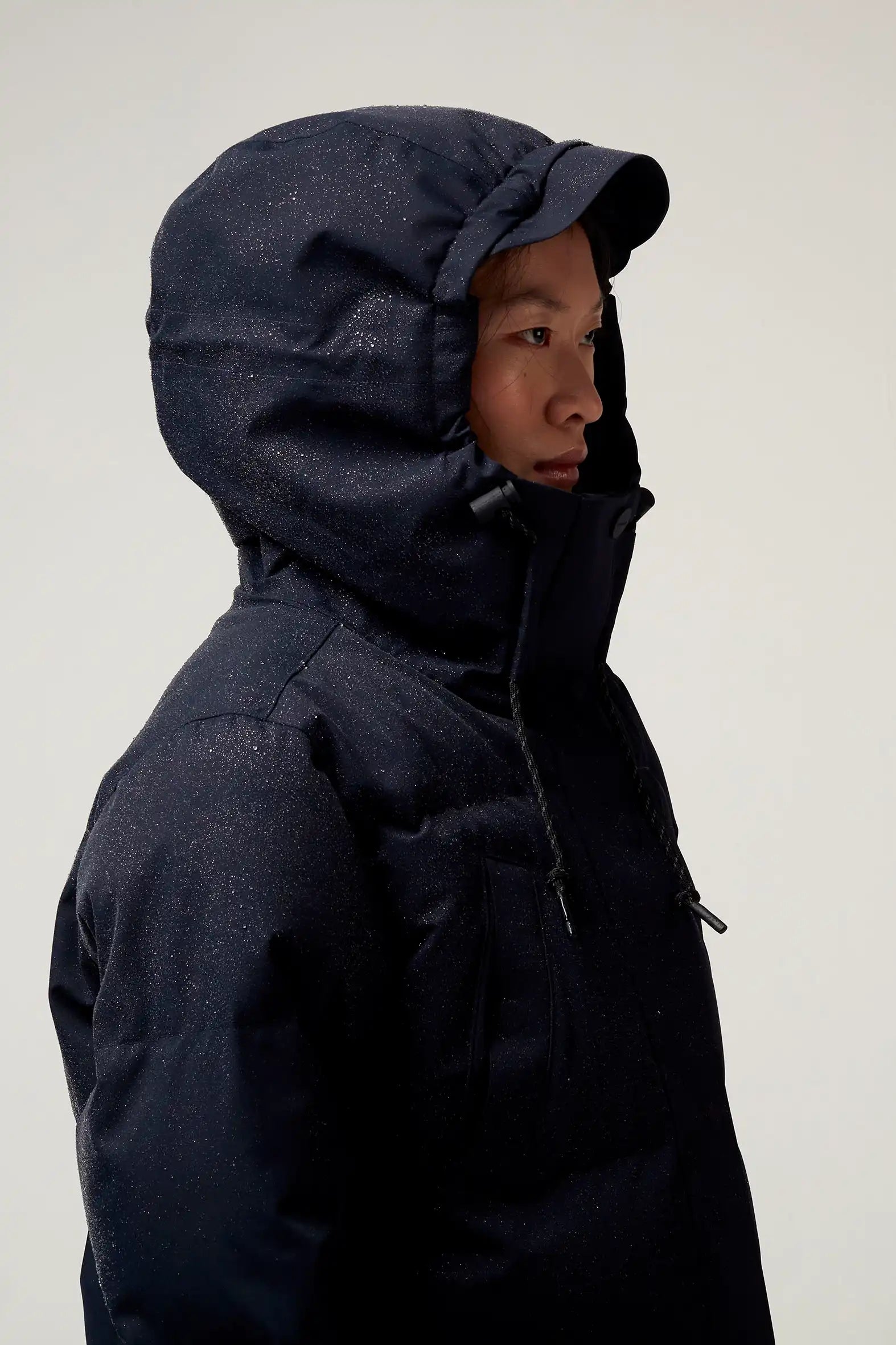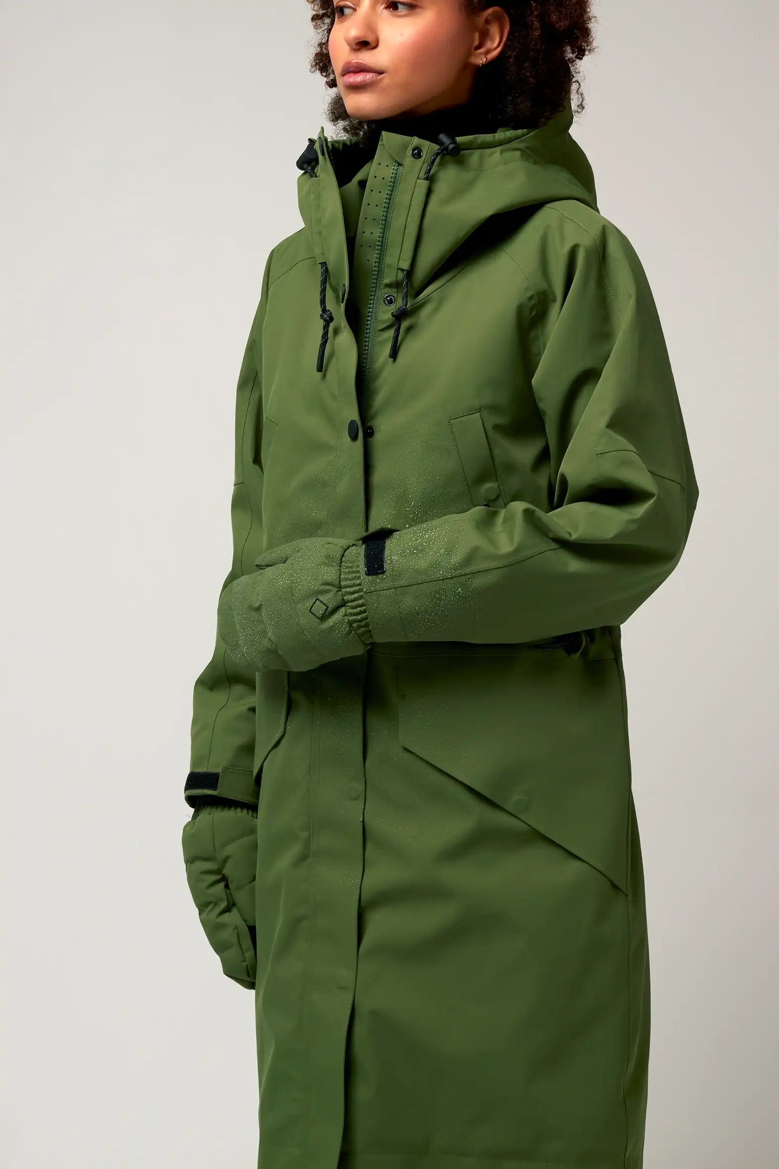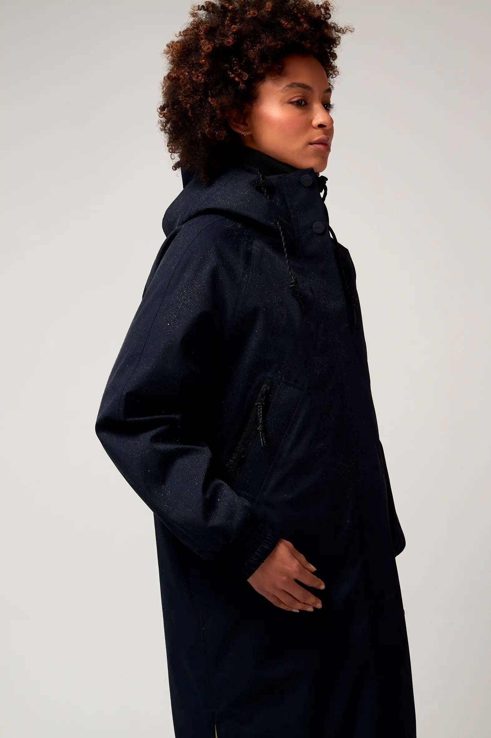 Il parka Wind Speed Mood Indigo è realizzato in nylon tecnico con un Bionic Eco Finish® resistente ed ecologico. È completamente impermeabile (20.000 mm di pressione in colonna), traspirante (8.000 g/m2) e si chiude con una pratica chiusura magnetica invisibile. Il cappuccio è regolabile e il parka ha tre tasche. Dettaglio fantastico: puoi indossare questo parka "stile zaino" grazie alla fascia diagonale all'interno del parka!
