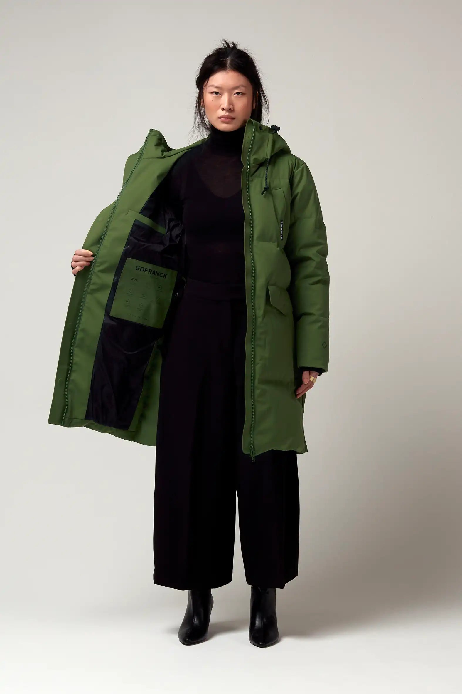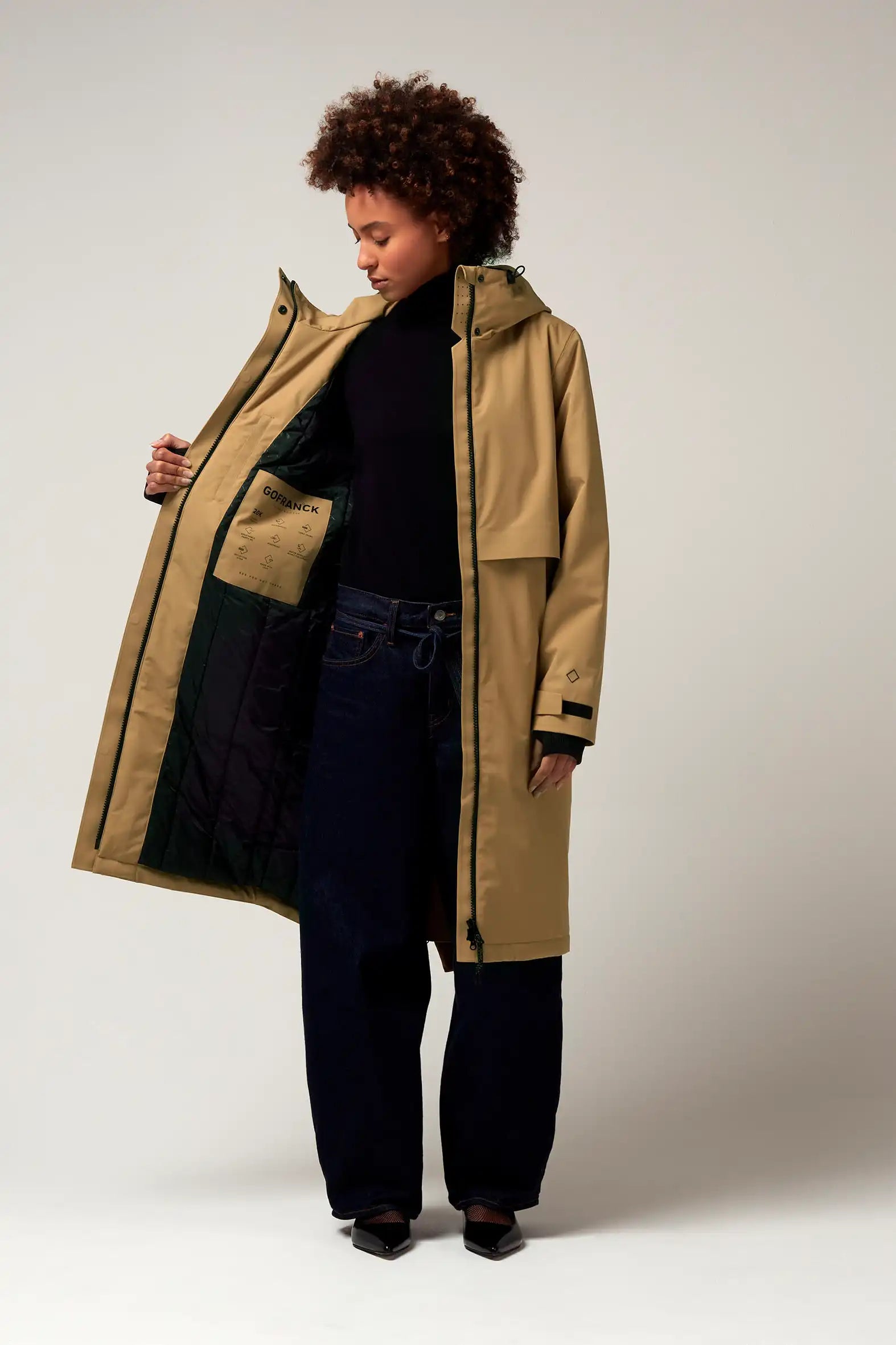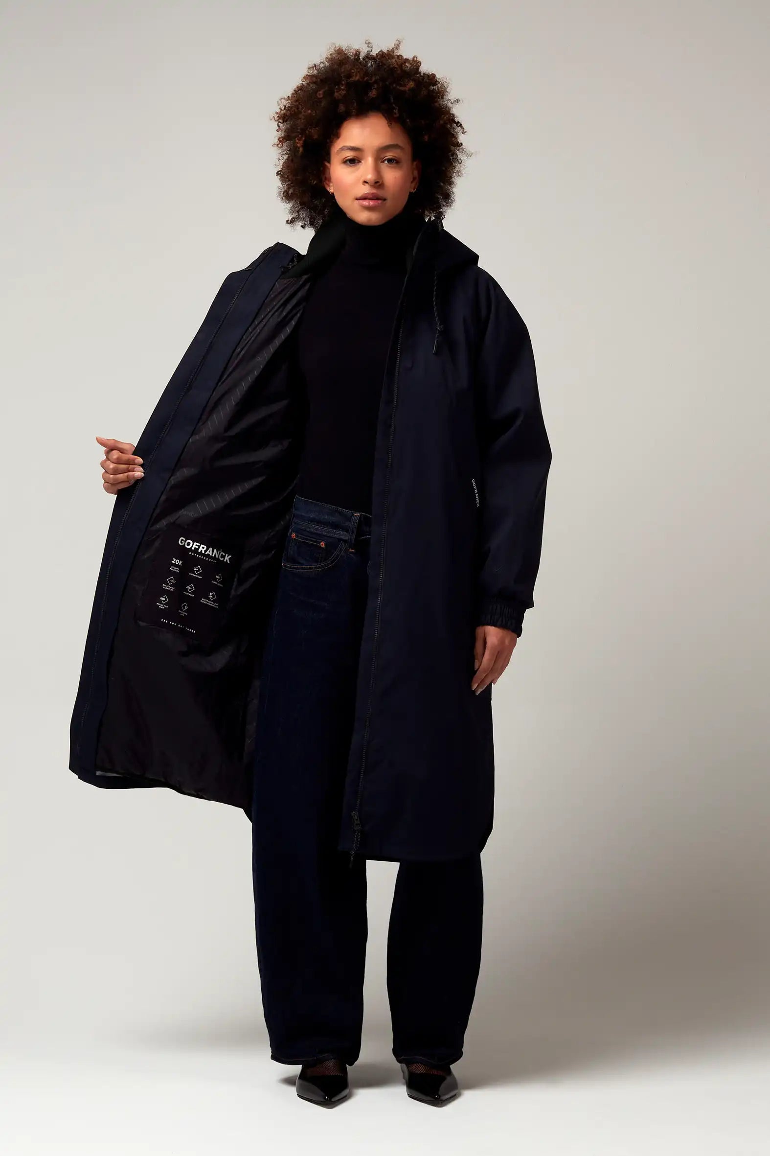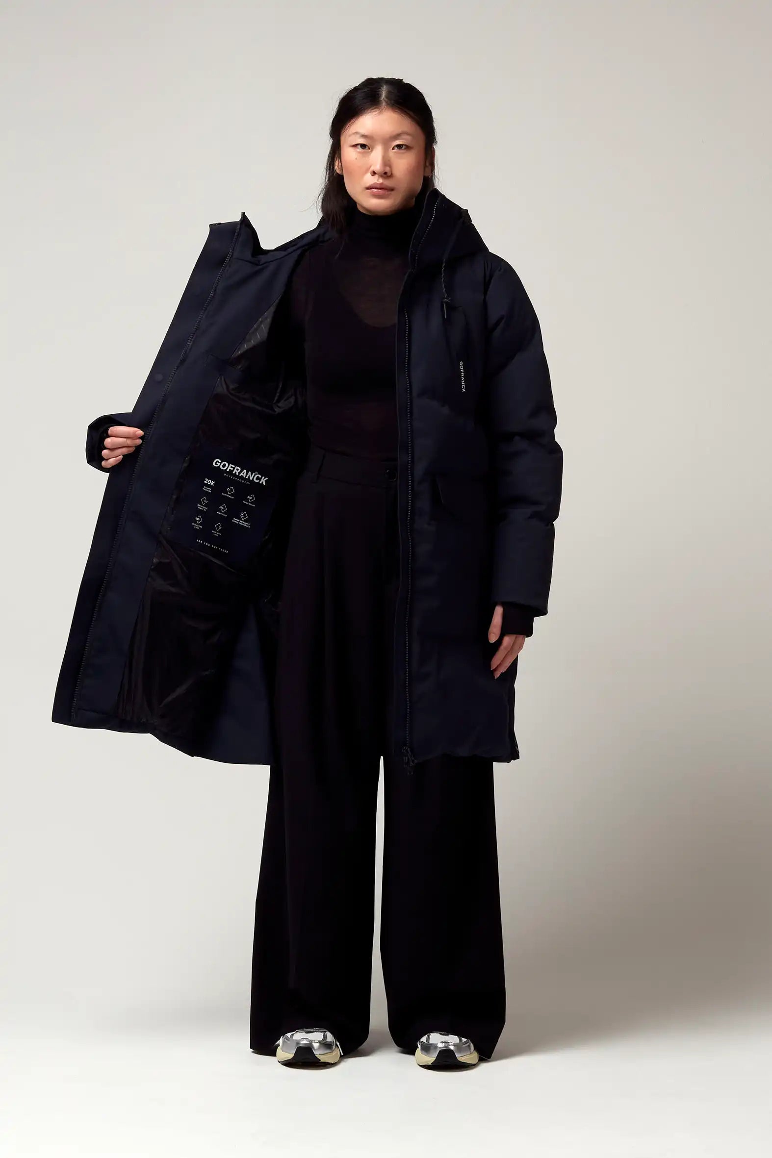 Un modello di cappotto invernale GoFranck estremamente popolare è il GoFranck Cold Winter. Questo parka da donna alla moda è il cappotto invernale perfetto ed è progettato pensando a funzioni modulari e soluzioni intelligenti. Ad esempio, il parka GoFranck Cold Winter Deep Black è completamente impermeabile (colonna d'acqua di 20.000 mm), traspirante (8000 g/m2) e realizzato con materiali tecnici sostenibili, ecologici e di alta qualità. Il parka è dotato di 5 tasche, striscia di visibilità riflettente, cappuccio regolabile, vita regolabile e chiusura magnetica invisibile. E non da poco, il cappotto ha una morbida fodera in pelliccia sintetica all'interno, che offre il massimo comfort.