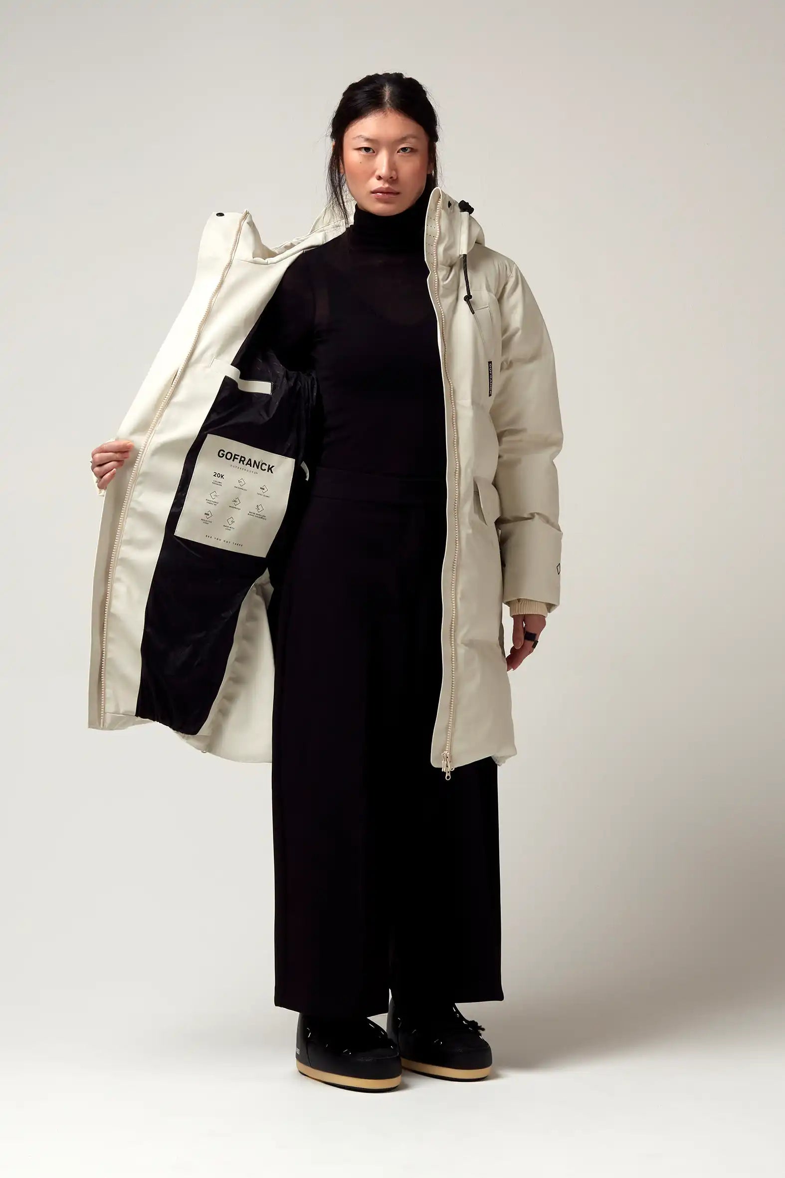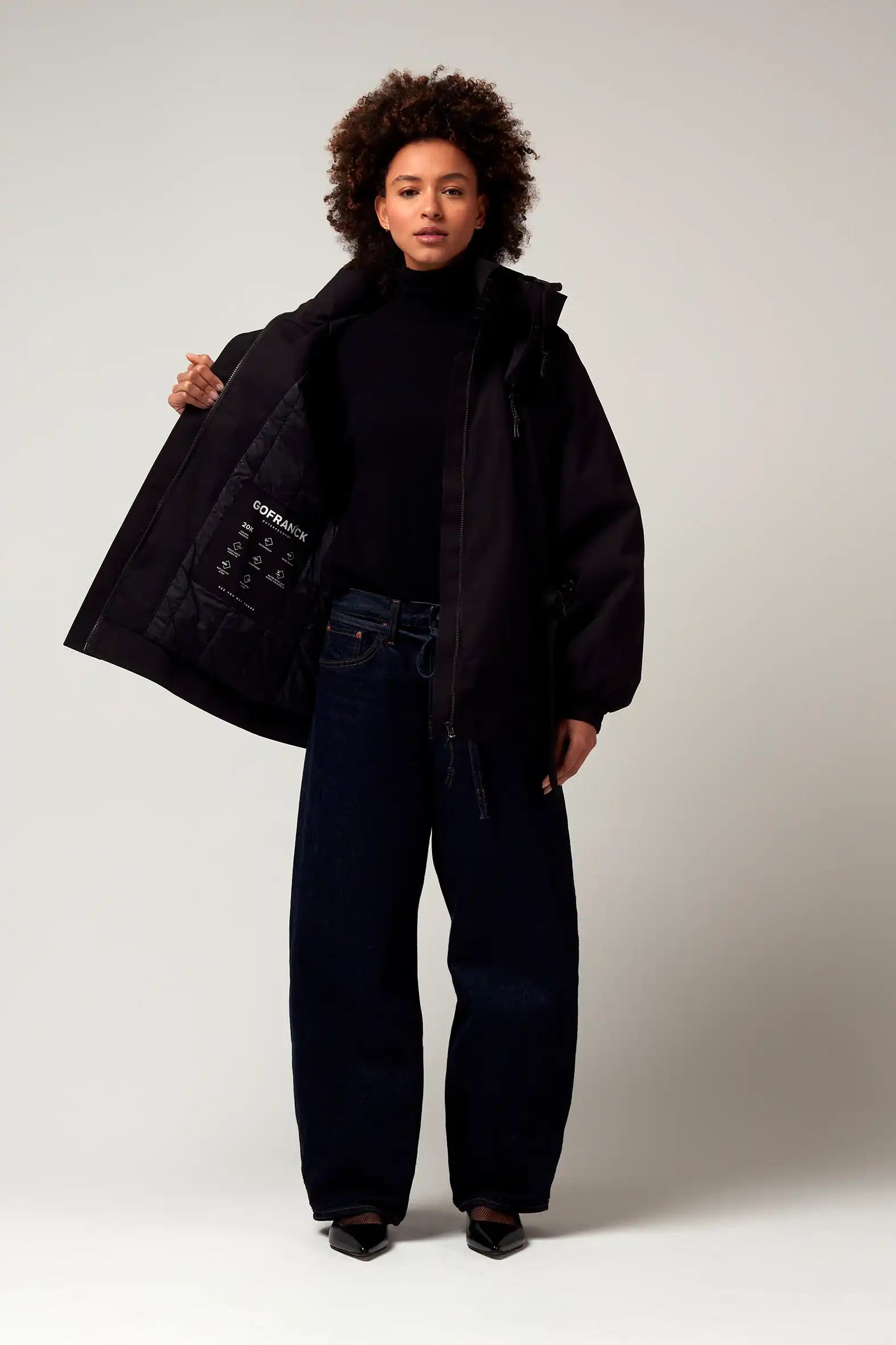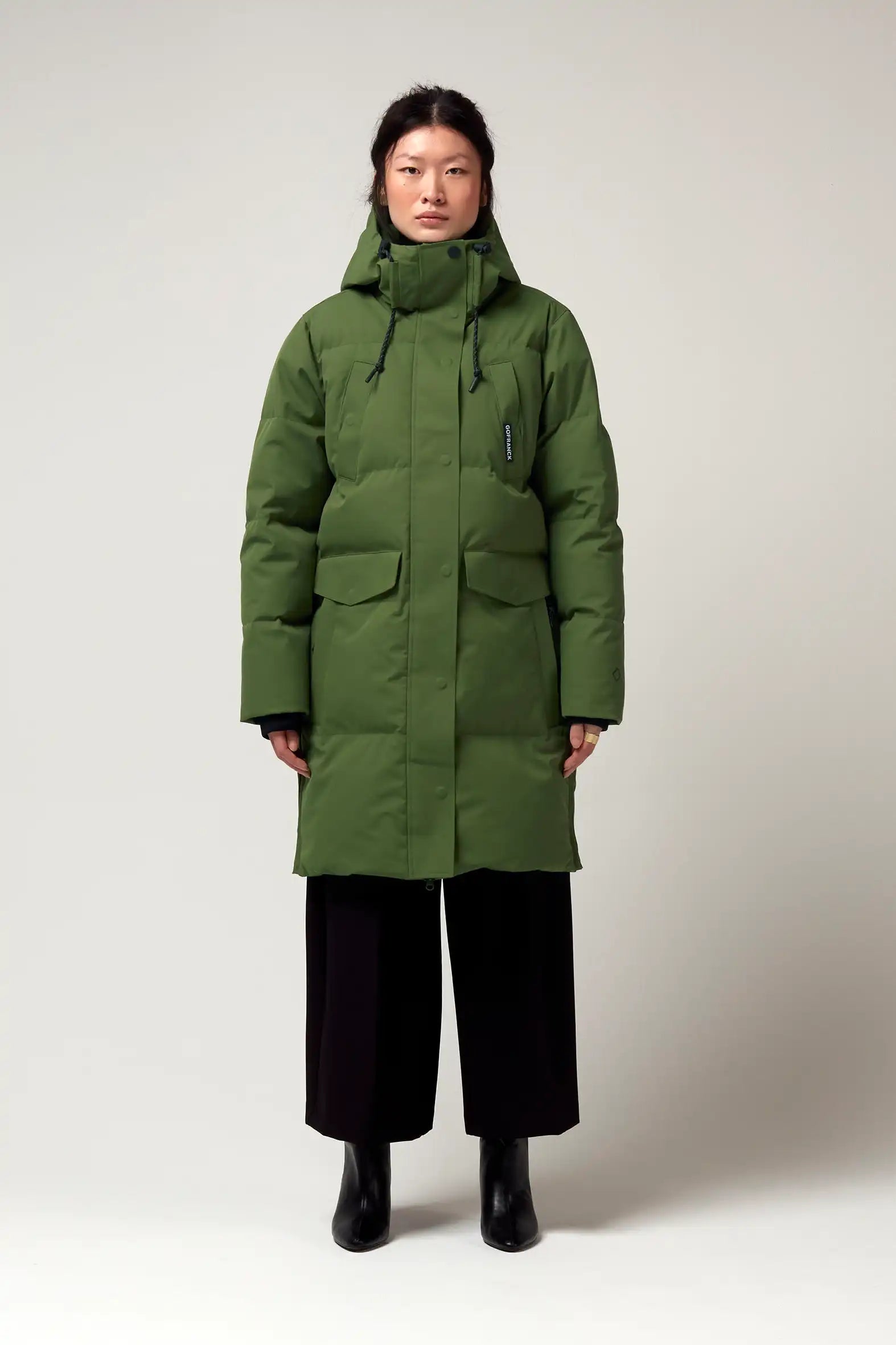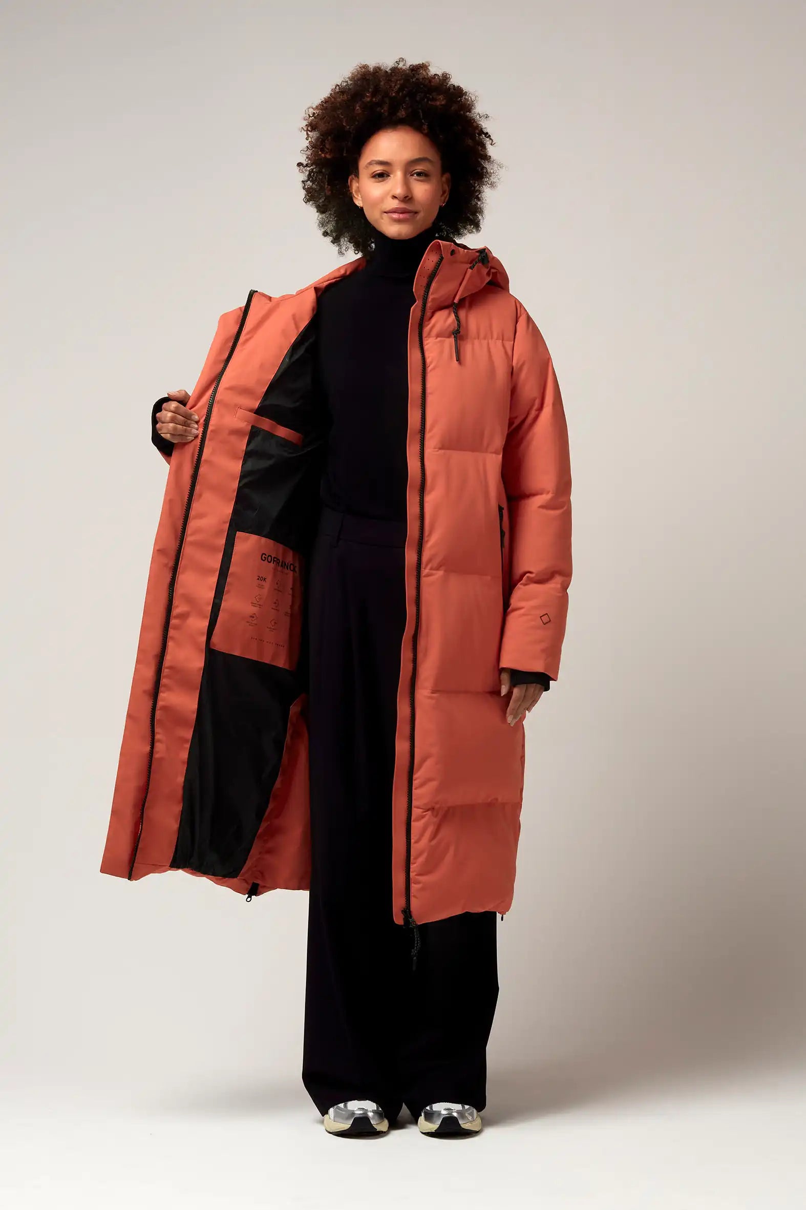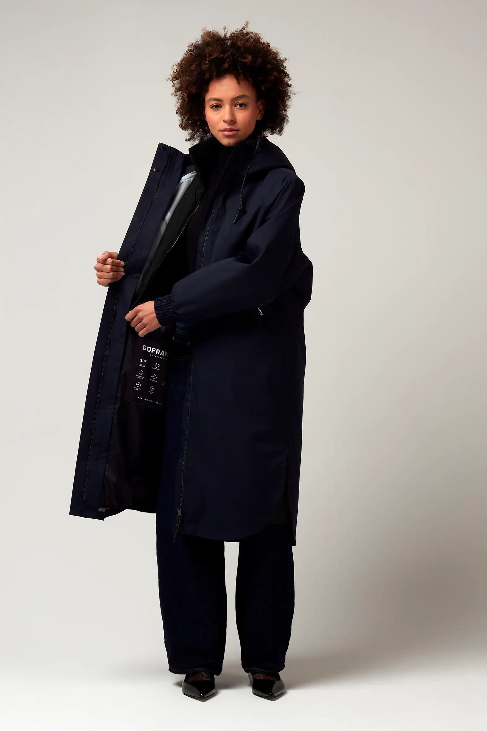Un modello di cappotto invernale GoFranck estremamente popolare è il GoFranck Cold Winter. Questo parka da donna alla moda è il cappotto invernale perfetto ed è progettato pensando a funzioni modulari e soluzioni intelligenti. Ad esempio, il parka GoFranck Cold Winter Deep Black è completamente impermeabile (colonna d'acqua di 20.000 mm), traspirante (8000 g/m2) e realizzato con materiali tecnici sostenibili, ecologici e di alta qualità. Il parka è dotato di 5 tasche, striscia di visibilità riflettente, cappuccio regolabile, vita regolabile e chiusura magnetica invisibile. E non da poco, il cappotto ha una morbida fodera in pelliccia sintetica all'interno, che offre il massimo comfort.