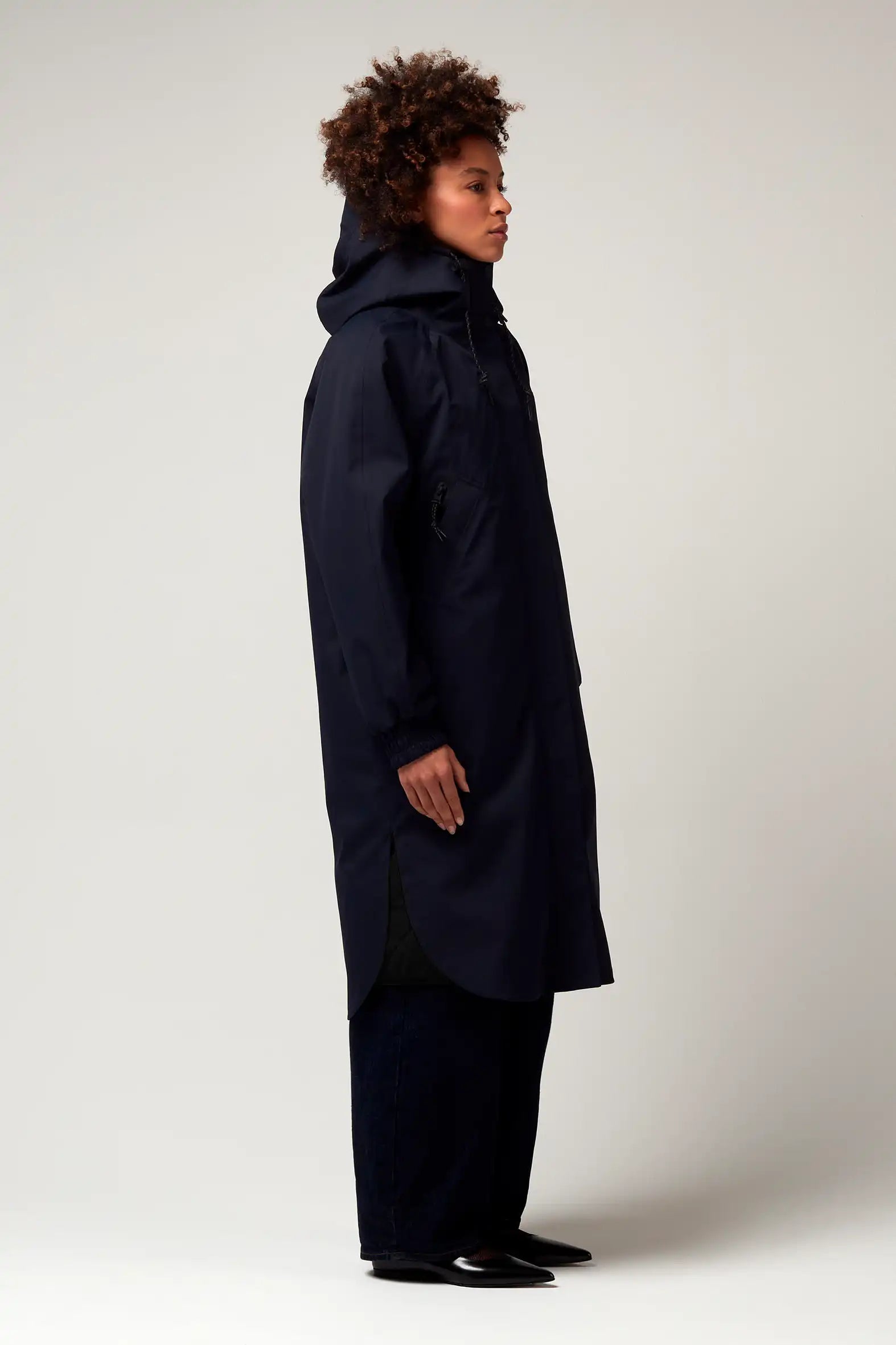 Il GoFranck Wind Speed Mood Indigo è un parka alla moda da donna che protegge dal freddo e dalla pioggia. Un bel dettaglio tecnico è che è disegnato con ali di bicicletta all'interno (parte inferiore) del parka. Questi ti danno più spazio per le gambe e protezione mentre pedali, ma sono anche comodi da allacciare con un bottone a pressione all'interno della giacca quando non sei in bici.